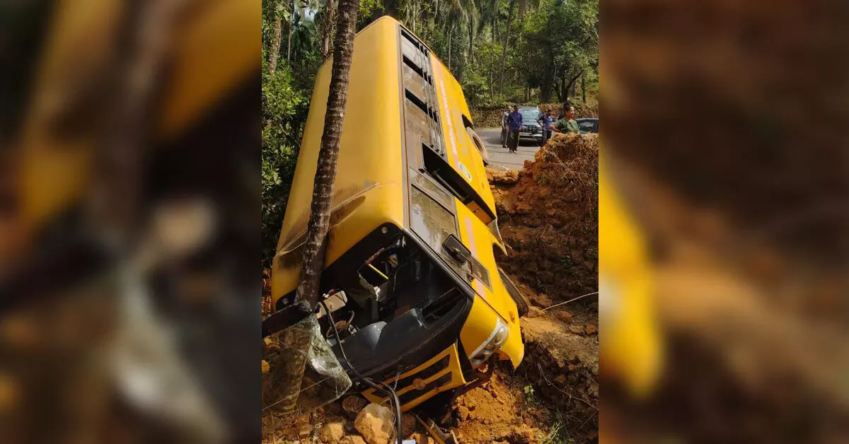 A private college bus heading to an NSS camp overturned near Hallihole, Kundapura. The bus hit a coconut tree, preventing a major accident, and students escaped with minor injuries.